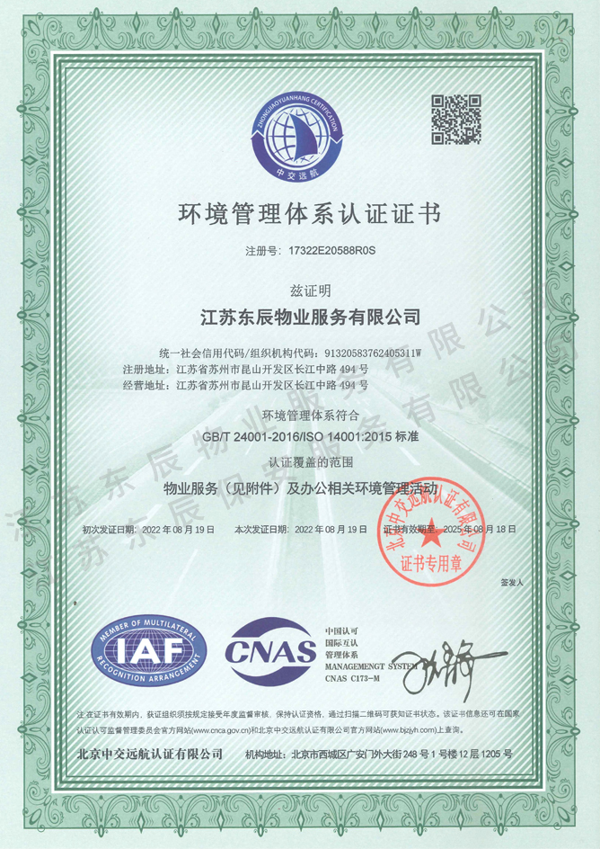 • 2022-2025年環境管理體系認證證書
